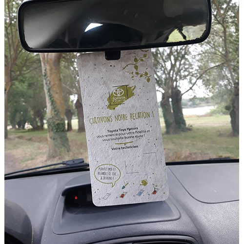 Garagistes, concessionnaires automobiles, hôtelliers, agences immobilières, cultivez la relation client en offrant un cadeau utile, ludique en lien avec les thèmes de l’écologie, la nature. Ce tapis original offre une surface de communication intéressante sur une matière entièrement biodégradable.