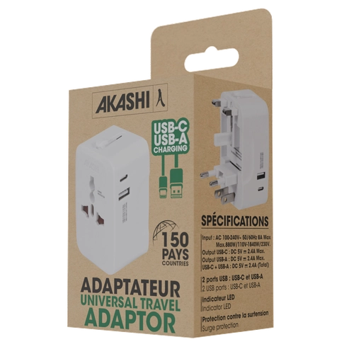 Adaptateur de voyage avec 2 ports USB - 150 pays