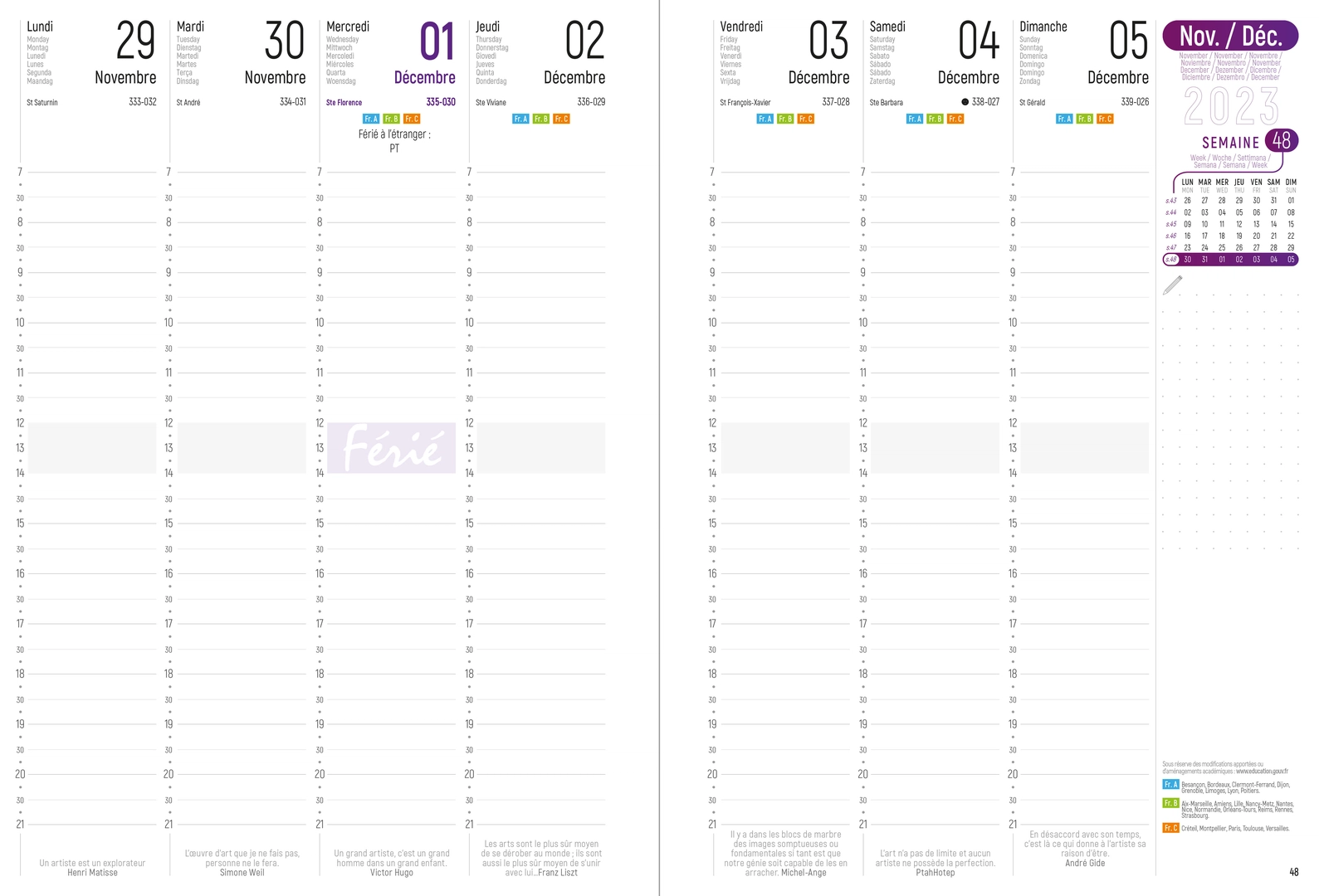 GRILLE 13 mois en quadrichromie - 128 pages + 16 pages d'Atlas - 7 langues