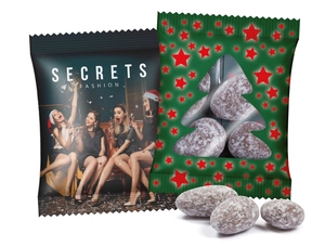 Les Amandes de Noël sont fabriquées en Europe, plus particulièrement en Allemagne. Délicieuses amandes de Noël dans un sachet personnalisable ou standard (blanc ou transparent).