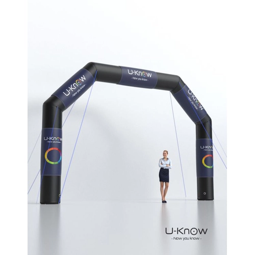 Arche gonflable personnalisable 6,50 x 4,50m. Structure noire ultra-résistante grâce à sa composition en triple peau. Cet alliage de matériaux techniques lui permet d’être beaucoup plus légère qu’une arche en PVC Tarpaulin classique (11kg contre 25kg). L’arche est personnalisée par 5 bandeaux imprimés en quadri numérique qui sont fixées par velcro autour des boudins.Traitement Anti-feu norme CPAI 84 pour utilisation en intérieur. L’arche se gonfle en 4 minutes et s’installe en 5 minutes. Elle est livrée dans son sac de transport avec sardines et cordes de fixation.