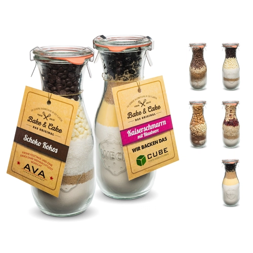 Préparation de gâteau dans une bouteille fermée contenant 5 saveurs différentes pour environ 30 biscuits, la personnalisation est réalisée sur l'étiquette.