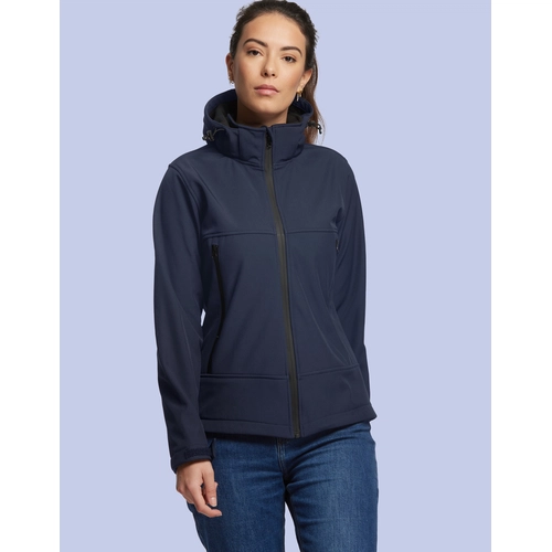 Blouson softshell femme en polyester recyclé rPET personnalisable : un vêtement technique et écoresponsable conçu pour conjuguer performance, style et engagement durable.