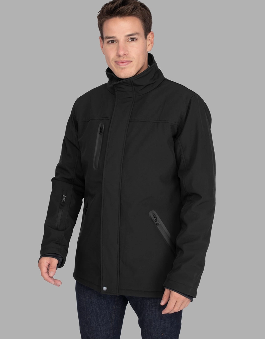 Ce blouson publicitaire est conçu en softshell 3 couches avec une membrane imperméable et respirante 5000/3000, garantissant confort thermique et protection face aux intempéries.