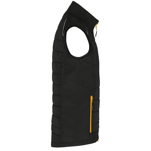 Il est également doté d'une imperméabilisation BIONIC Finish Eco et d'un rembourrage sorona® AURA. La fermeture éclair à double sens avec rabat coupe-vent doublé sur toute la longueur et le réglage de la taille offrent un confort supplémentaire. Le bodywarmer est disponible en noir avec des détails fluorescents et en trois tons dans les versions pour hommes et pour femmes. Les gilets peuvent être assortis à n'importe quelle tenue, tant pour le travail quotidien que pour les loisirs.
