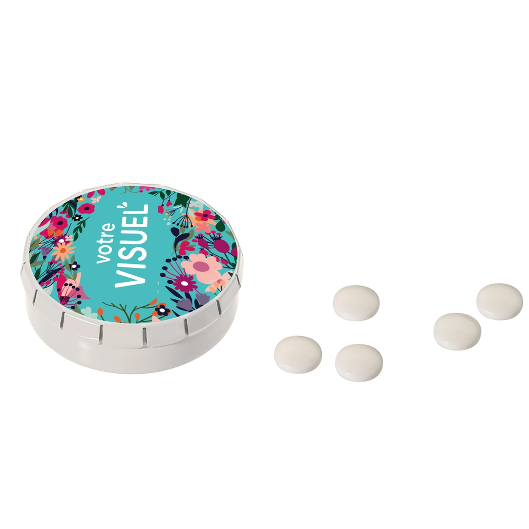 En un seul clic, vous pouvez ouvrir cette boîte de bonbons à la menthe fabriqué en Europe, et avec un mouvement de main simple vous le refermez. Existe en différentes couleurs. Contient 12 grammes de bonbons à la menthe avec sucre.