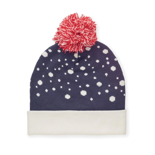 Bonnet de Noël tricoté avec revers et pompon en acrylique doux et extensible.