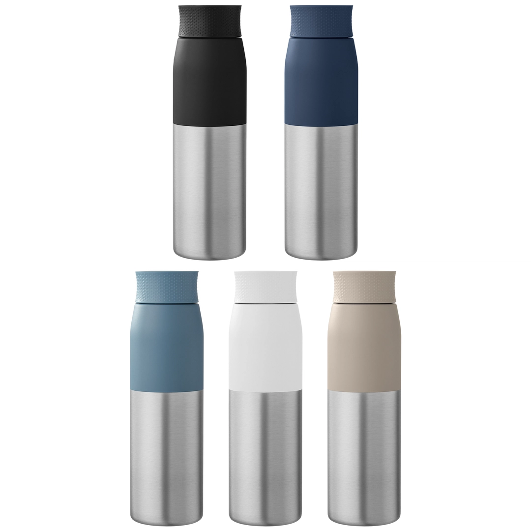 Son design étanche intègre un couvercle texturé à torsion avec une partie supérieure peinte mate, assortie à la bouteille pour un rendu harmonieux. Sa finition brossée lui confère un look moderne et professionnel.