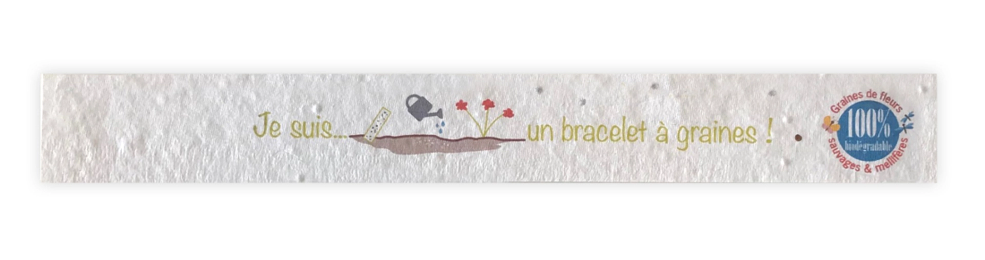 Bracelet en papier 100% biodégradable, ensemencé de graines de fleurs en mélange, à planter en terre pour leur permettre de pousser !