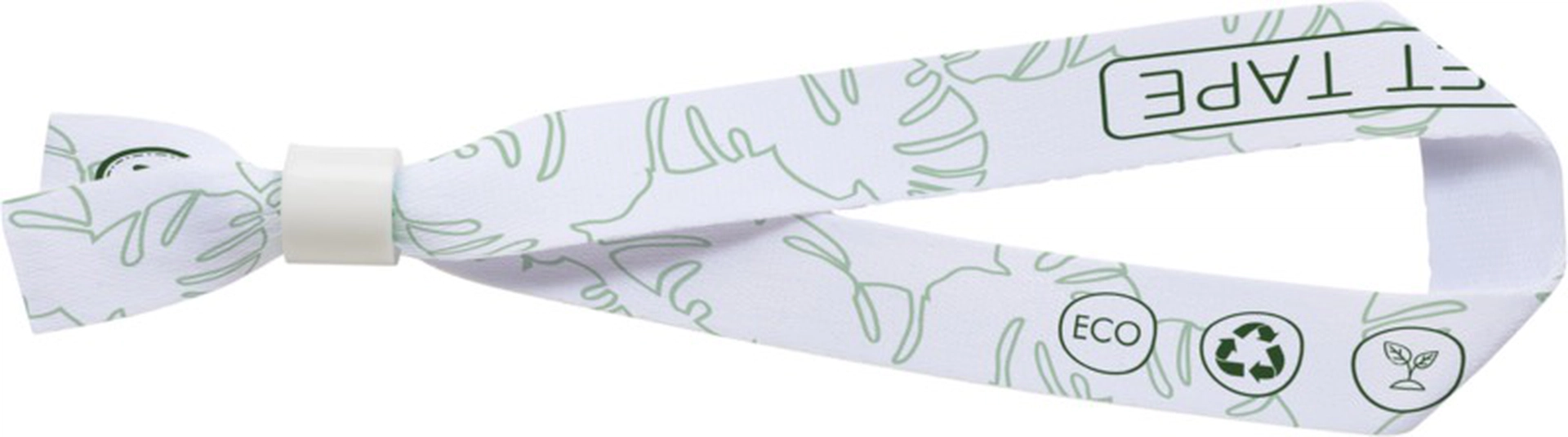 Bracelet festival en PET recyclé et fermoir de sécurité en plastique recyclé -RPET. Comporte un marquage en couleur sur un côté. Le fermoir de sécurité unidirectionnel empêche d’enlever l’article, ce qui en fait le pass de sécurité parfait pour les fêtes et événements. Polyester recyclé, Plastique recyclé PET.