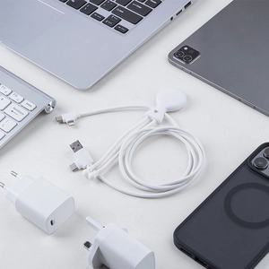 Optez pour notre câble 3 en 1 en plastique recyclé, marqué en France, pour une solution de charge rapide, éco-responsable et personnalisable. Chez Pantacom, spécialiste des objets et textiles publicitaires, bénéficiez d'un service sur mesure, d'un devis et d'un bon à tirer (BAT) gratuits pour concrétiser vos projets publicitaires avec une conscience écologique.
