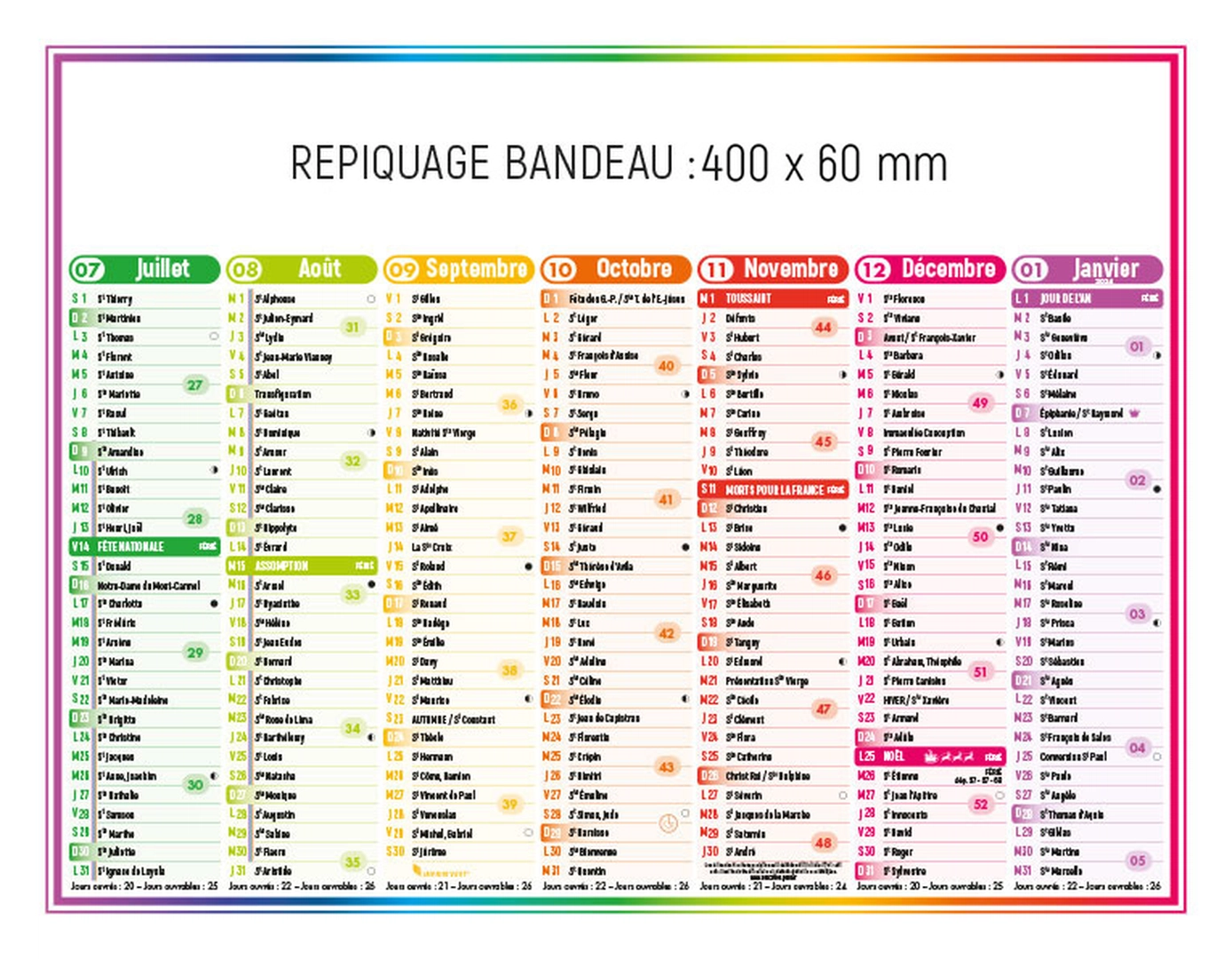 - Grille standard 7 mois par face imprimée en quadrichromie sur papier CMB PEFC 115 g/m²