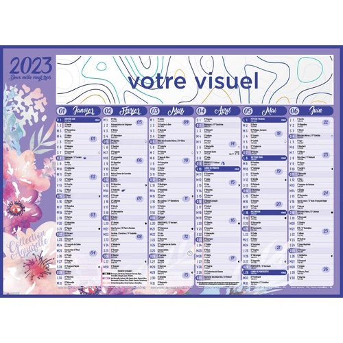 Calendrier bancaire 2025 AQUARELLE - format 43 x 33 cm - 6 mois par face