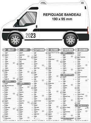 - Calendrier semestriel cartonné, contrecollé en bord franc sur carton gris 16,5/10ème