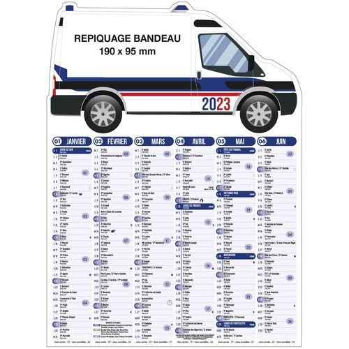 Calendrier bancaire 2025 POLICE 55 x 40 cm - 6 mois par face