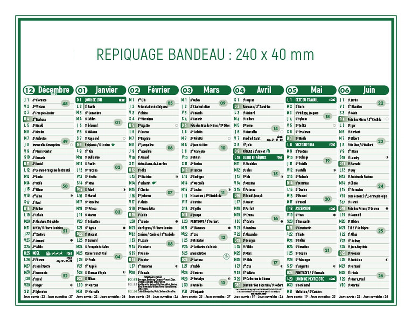 - Repiquage publicitaire recto/verso : 240 x 40 mm