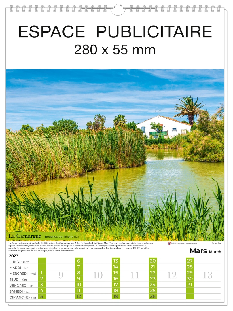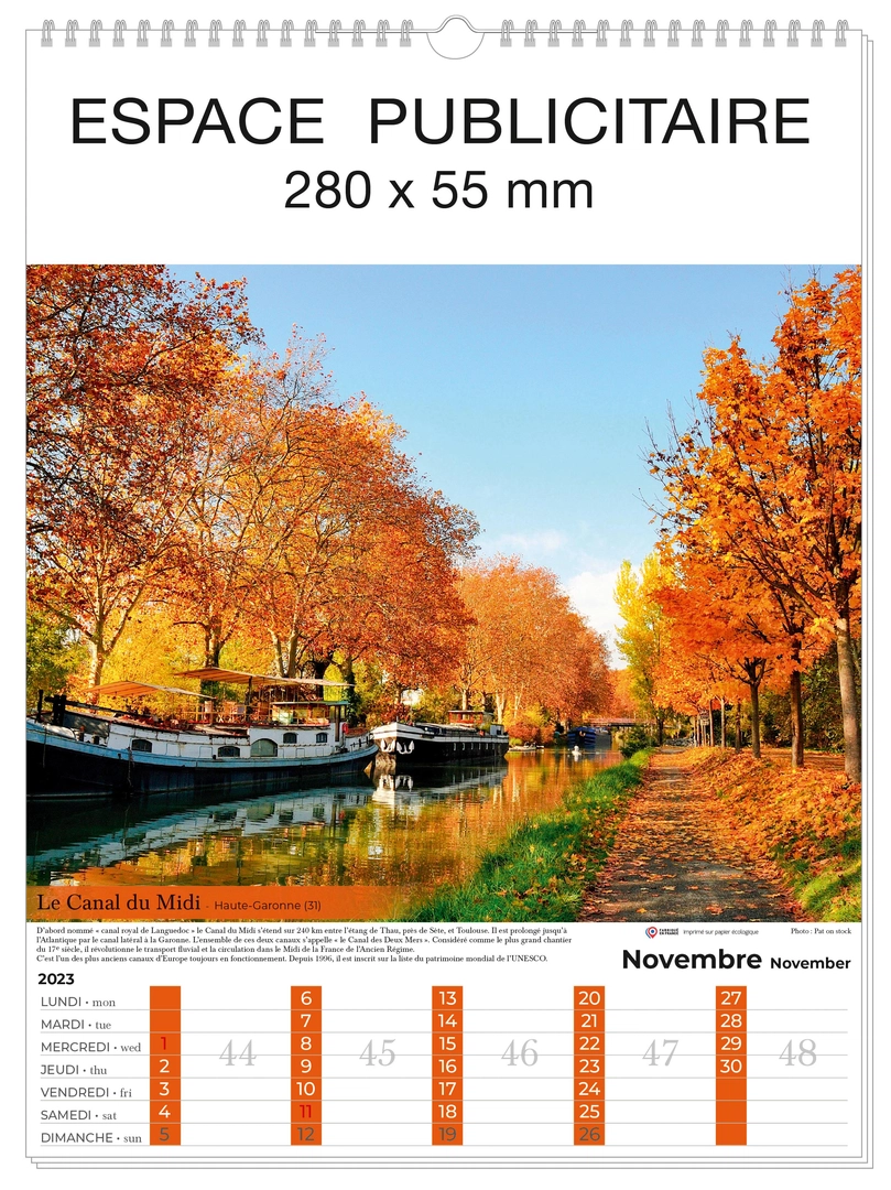 Calendrier Feuillet 2025 PAYSAGES DE France 32 x 43 cm - 13 feuillets