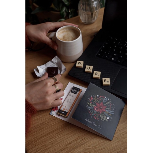 Offrez pour les fêtes de fin d'année une carte de voeux personnalisée à vos collaborateurs, clients ou autres partenaires ! Le chocolat, qui compose la carte, est confectionné par un Maître artisan depuis 2012 au sein d'une société familiale et qui souhaite que le chocolat soit enfin accessible à tous ! Le chocolat fabriqué est le résultat de la confection de recettes uniques à partir de chocolats grands crus et de qualité, aux arômes uniques et inoubliables !