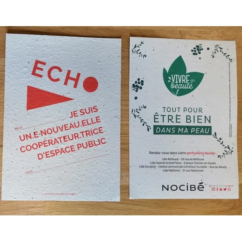 Carte en papier de graines au format A5.