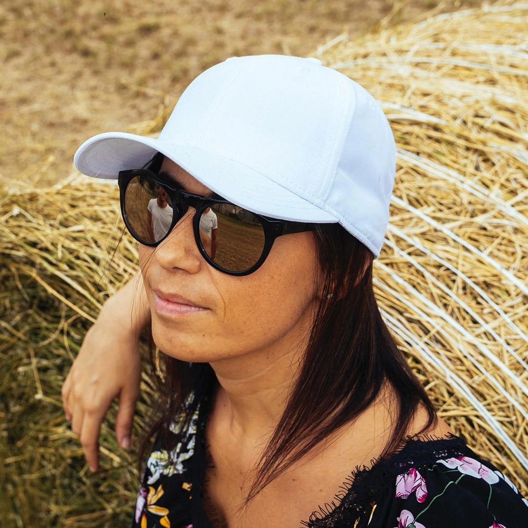 100% polyester recyclé. Casquette réalisée à partir de onze bouteilles en plastique recyclée par mètre carré. 6 panneaux, visière semi courbée, oeillets surpiqués, 6 coutures sur la visière, fermeture en PVC.