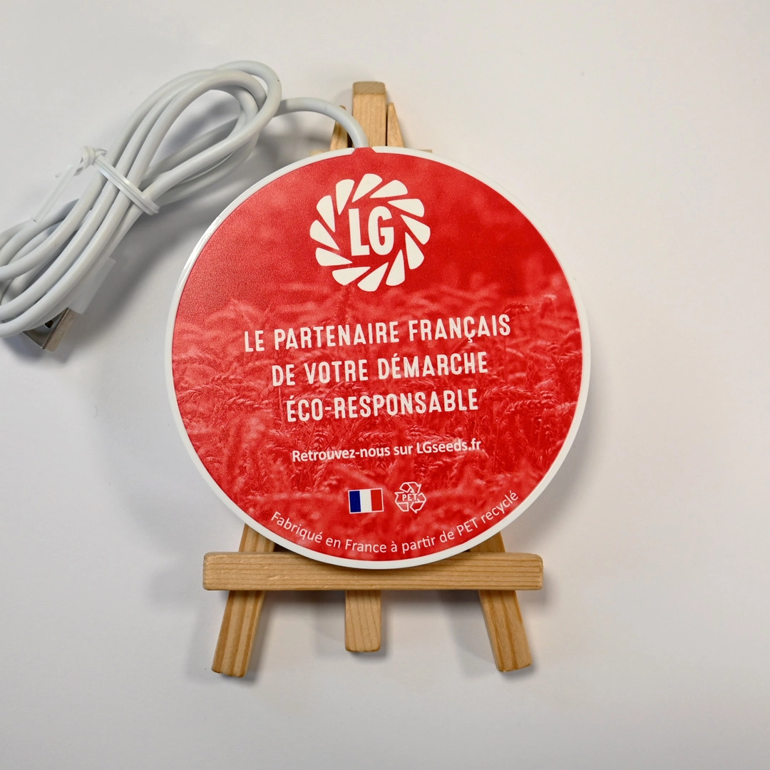 Mais chez Pantacom, nous souhaitions aller plus loin en vous proposant un accessoire publicitaire innovant et pratique, mais également écologique. 100% fabriqué en PET recyclé, le support de ce chargeur à induction promotionnel vous offre une large surface pour promouvoir votre image de marque. Bénéficiant d’une technologie “fast charge”, permettant de recharger le périphérique mobile en un minimum de temps, ce chargeur à induction publicitaire vous permet de mêler engagements écologiques, et désir d’innovation. À l’ère du “sans fil”, cet objet promotionnel sera un argument de choix pour séduire vos clients, collaborateurs ou prospects en l’intégrant à votre communication par l’objet.