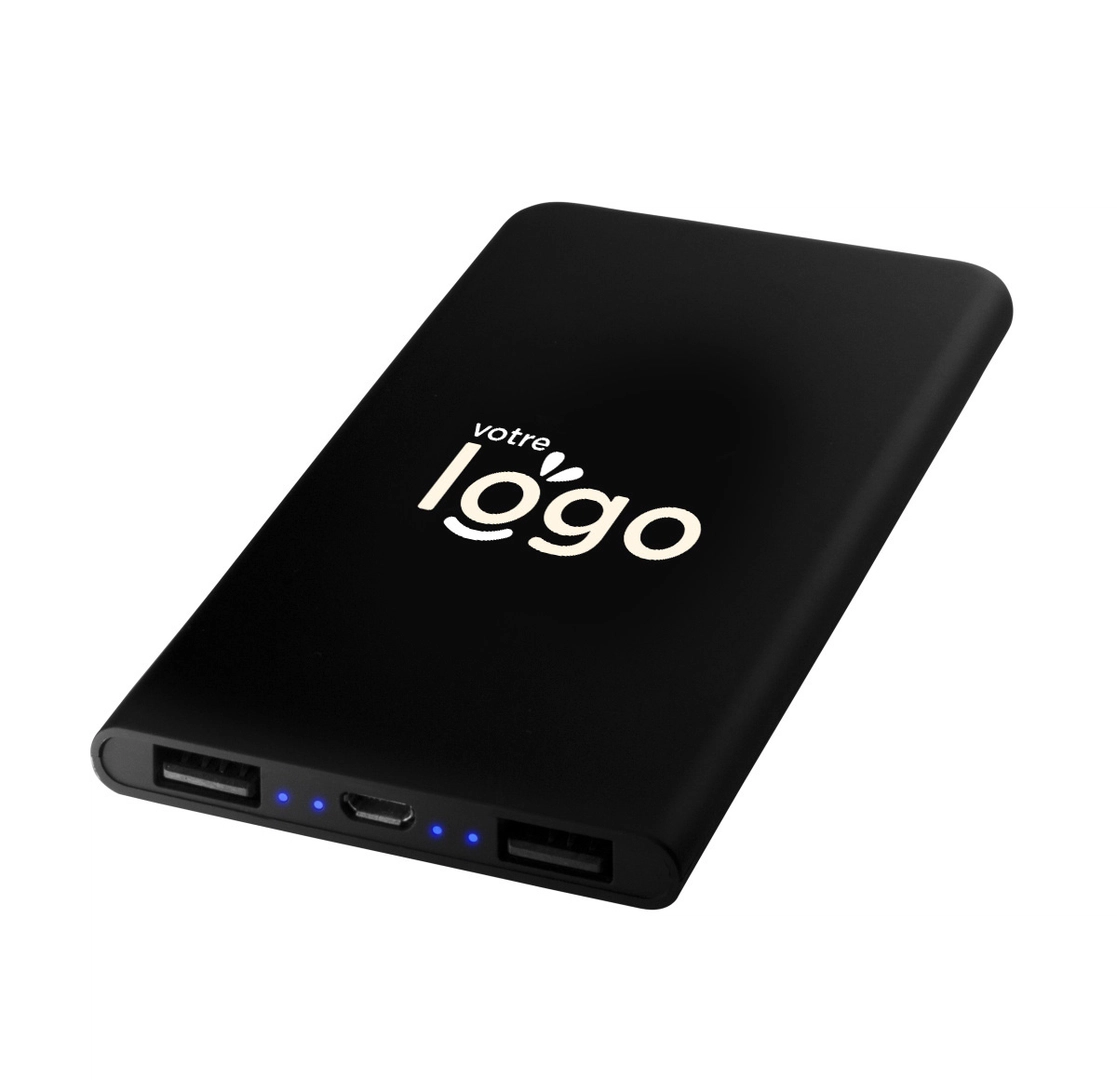 Fine et légère, le format de cette powerbank lui permet d’être facilement transportable et de ne pas être encombrante lors de vos déplacements professionnels, par exemple. Compatible avec tous types de mobiles, cette batterie externe se présentera comme un support de communication intéressant, original et surtout utile à vos collaborateurs et clients !