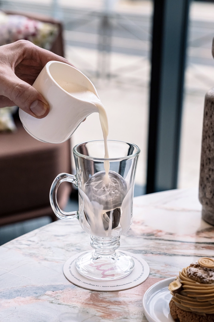 ETAPE 2 : Ajoutez du lait chaud animal ou végétal pour faire fondre votre palet.