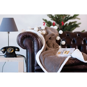 Couverture en polaire de 200 gr/m² avec doublure en polyester sherpa de 220 gr/m². Enveloppée dans un ruban et carte imprimable.
