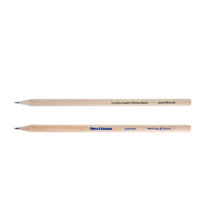La forme de ce crayon est Hexagonale, mais nous proposons également ce crayon en format Rond. Nous vous proposons ce crayon publicitaire sans vernis. Vous remarquerez également que le crayon a une tête coupée (sans gomme). Sachez également que le crayon existe avec gomme. Pour cela, vous avez le choix entre 15 couleurs de virole et 25 couleurs de gomme, vous permettant d'avoir un pantone approchant de votre logo d'entreprise.