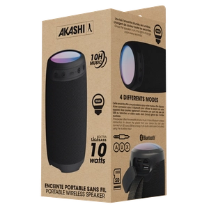Avec une autonomie de 10 heures grâce à sa batterie 1200 mAh, elle permet une utilisation prolongée. Son éclairage LED multicolore crée une atmosphère dynamique, tandis que ses nombreuses connectiques (carte SD, jack 3,5 mm, port USB-A) en font un accessoire complet et polyvalent.