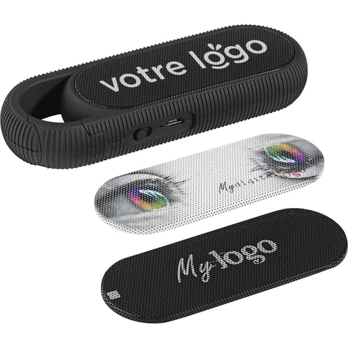 Communiquez sur votre entreprise avec l'Enceinte Bluetooth personnalisable, c'est le cadeau d'affaires High Tech par excellence pour vos commerciaux et clients. L'enceinte promotionnel d'une capacité de 300 mAh, d'une puissance de 3 Watts et de 3 à 5 heures d'autonomie. Cette enceinte est livrée dans une boîte individuelle de qualité et avec un câble USB. L'enceinte dispose de la technologie Bluetooth 5 et EDR. Cette enceinte est disponible uniquement en noir.