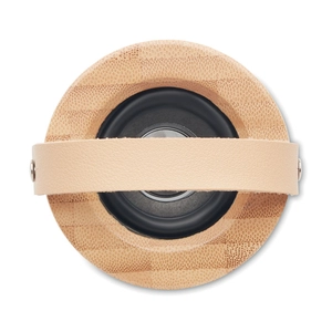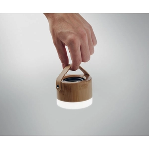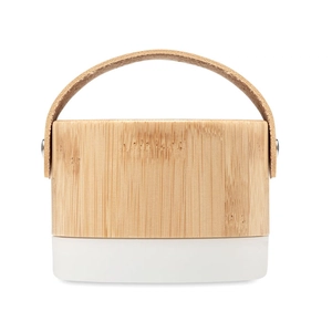 Haut-parleur sans fil 5.0 en ABS avec lumière dans un boîtier en bambou et sangle de transport en PU. 1 Batterie rechargeable Li-POL 300 mAh. Données de sortie : 3W, 4 Ohm. Durée d'écoute : environ 4h. Écoutez votre musique préférée partout où vous allez. Grâce à la sangle en PU, vous pouvez transporter cette enceinte portable et compacte avec vous. Le bambou lui confère une touche naturelle et élégante. Connectez votre smartphone ou tout autre appareil sans fil et commencez à écouter de la musique.