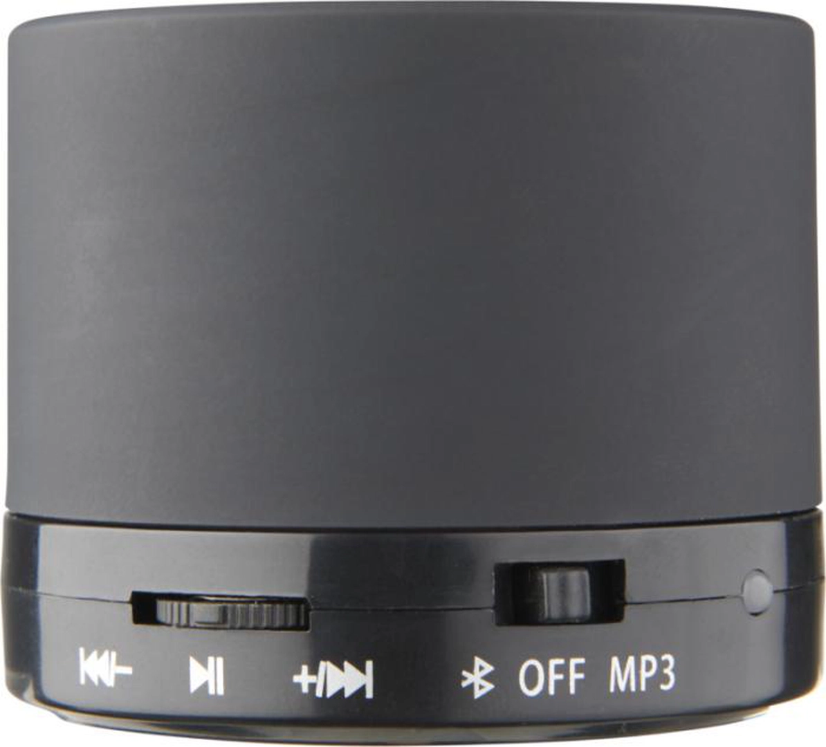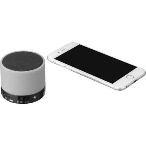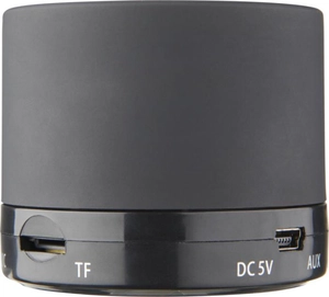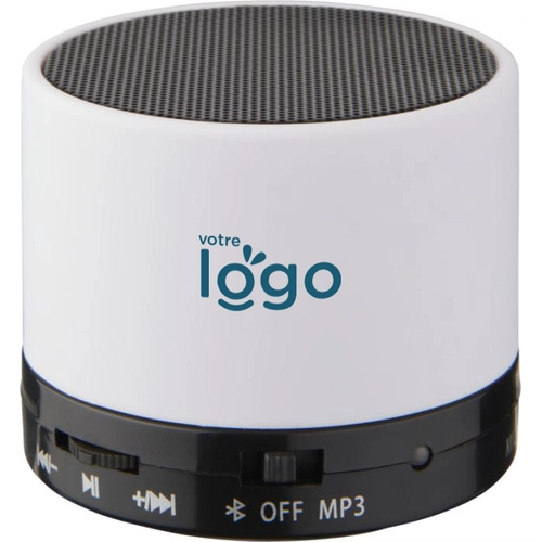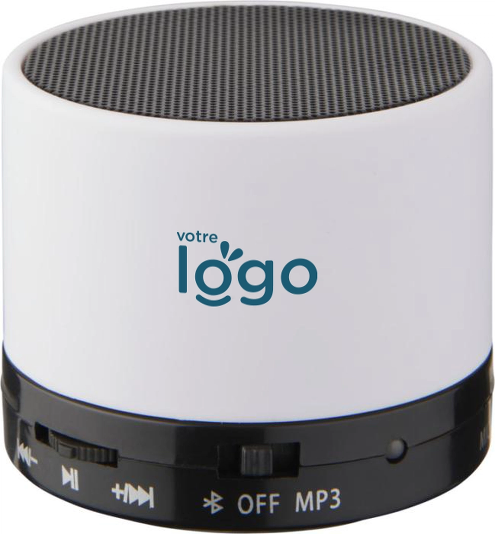 Haut-parleur de cylindre avec revêtement gomme. Profitez de la musique et des films n’importe où en l'appareillant à votre appareil compatible avec Bluetooth® tel qu'un iPhone, iPad ou des appareils Android OS avec ce haut-parleur portable Bluetooth® (portée de 10 m). Avec le micro intégré, le haut-parleur vous permet de faire une conférence téléphonique en déplacement par le biais de votre smartphone ou grâce à des programmes de chat vidéo comme Skype. Livré avec une belle finition caoutchoutée. Bloc d’alimentation USB fourni.
