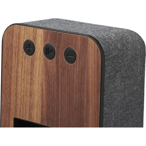Appréciez le son de cette enceinte Bluetooth® tissu et bois, très tendance.