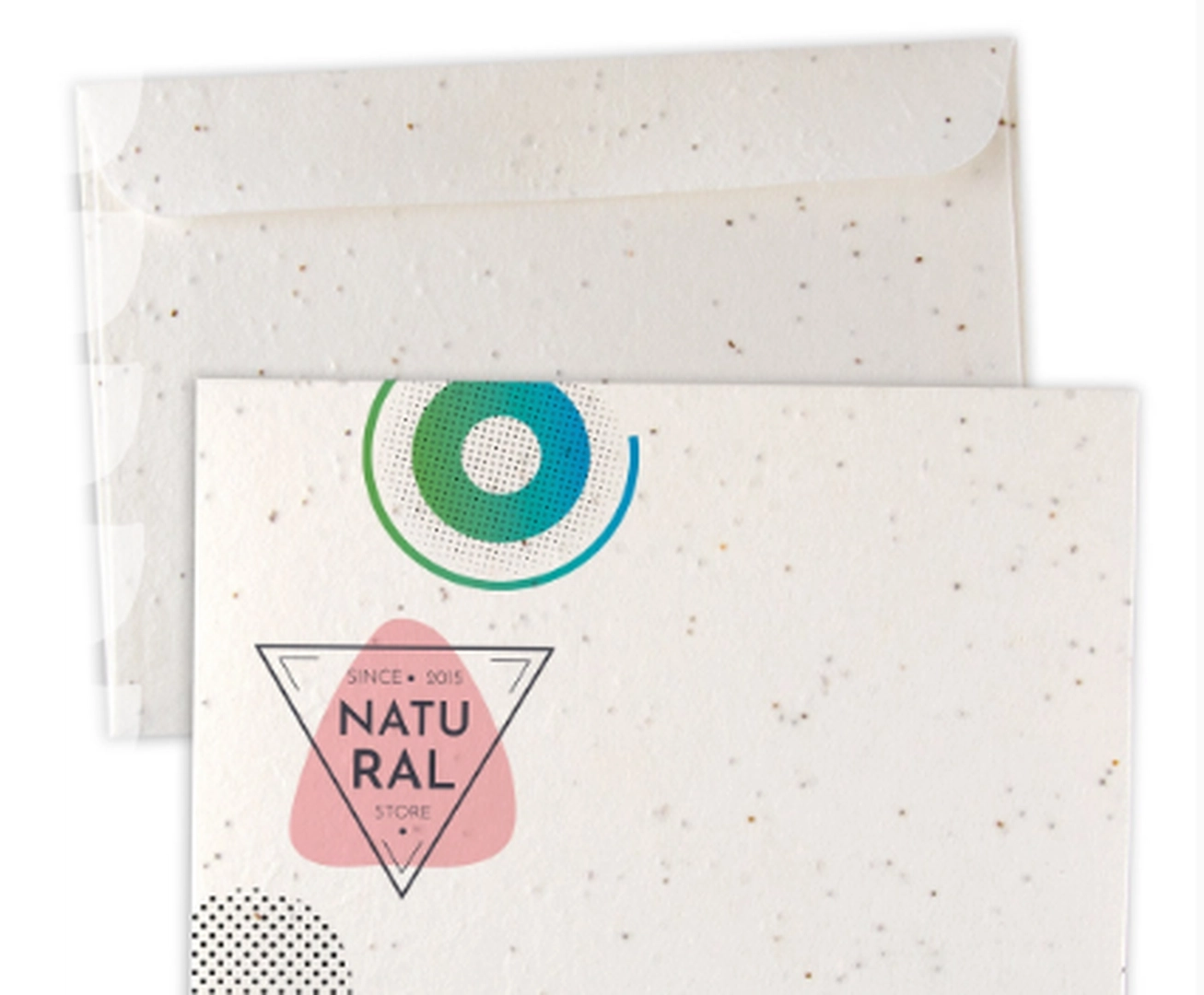 VOICI UNE ENVELOPPE EN PAPIER DE GRAINES ENTIÈREMENT PERSONNALISABLE À VOTRE COMMUNICATION !