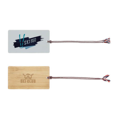 Etiquette à bagage en bambou fabriqué en France avec protection - avec ficelle tricolore
