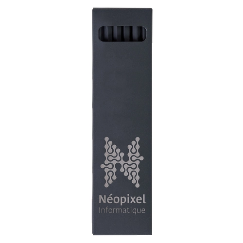 Pour ce qui est de la personnalisation, le support est pratique et compact, le set de crayons de couleurs est un cadeau d’entreprise parfait pour encourager votre créativité. La boite de couleur noir, dispose d’une large surface de marquage. Vous pouvez personnaliser votre set créatif en apposant votre visuel sur l’ensemble du packaging. La personnalisation se fait grâce à un marquage à chaud.