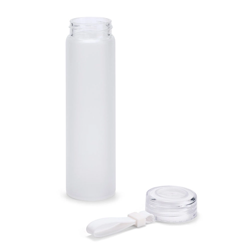 Gourde en verre borosilicaté avec bouchon à vis en PP.