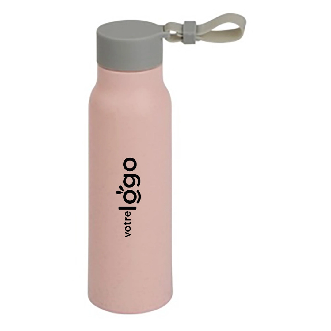 Gourde en verre personnalisable 500 ml avec revêtement: bouchon à vis et sangle de transport, composé de matières premières renouvelables, verre et plastique, capacité env.300 ml