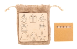 Apportez une touche créative à vos fêtes de fin d'année avec notre jeu de coloriage de formes de Noël personnalisable. Fabriqué en contreplaqué de bouleau de haute qualité, ce kit comprend 8 figures découpées thématiques prêtes à être coloriées et décorées selon vos envies. Accompagné de 12 crayons de couleur en bois naturel, il offre une expérience ludique pour petits et grands. Le tout est soigneusement présenté dans une élégante pochette en jute, le rendant idéal comme cadeau promotionnel écologique. Livré dans une boîte en papier recyclable, ce jeu est parfait pour mettre en avant votre marque lors de vos campagnes publicitaires de fin d'année. Personnalisez la pochette ou la boîte avec votre logo pour renforcer la visibilité de votre entreprise tout en offrant un objet utile et apprécié.
