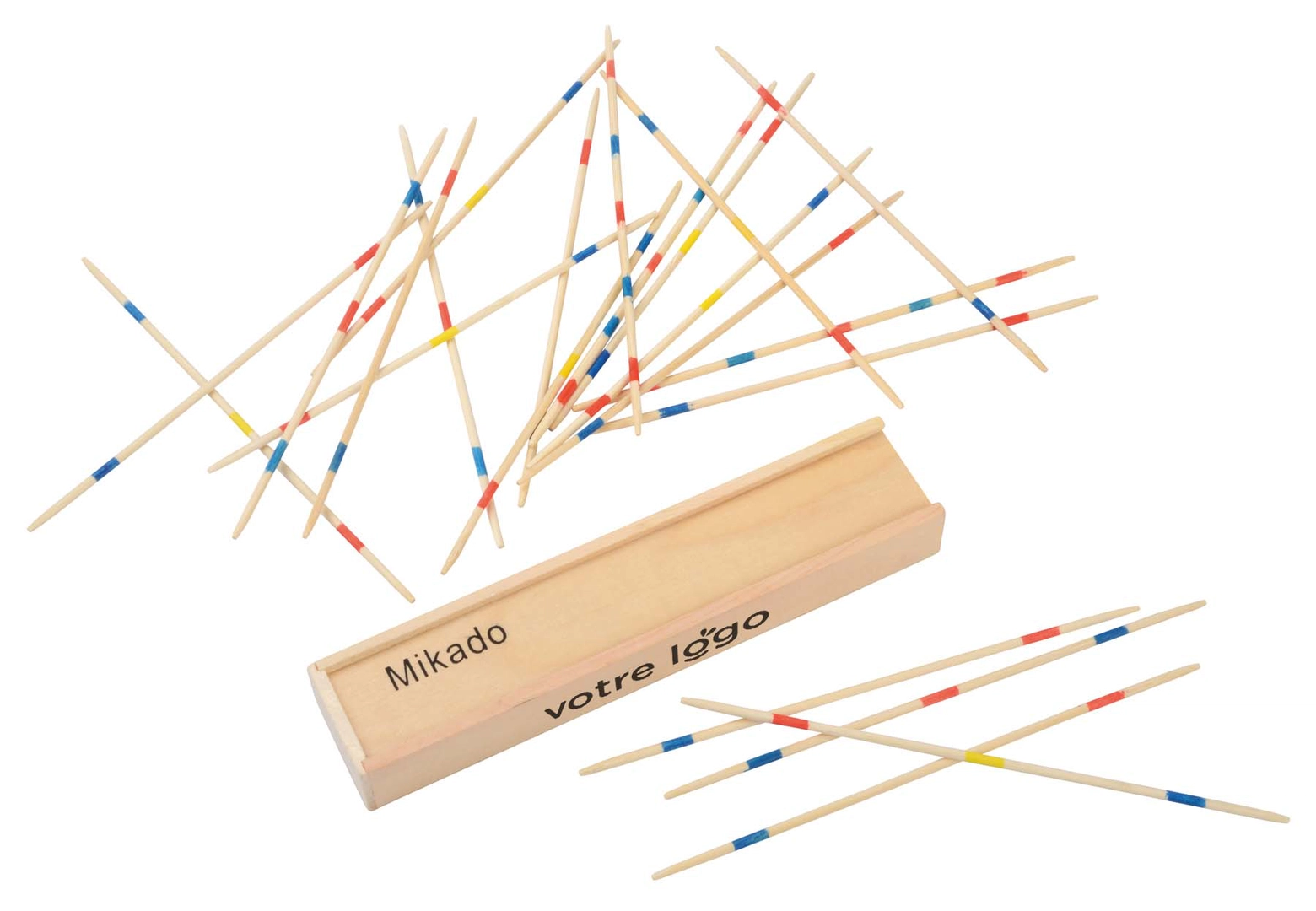 Le jeu du mikado est probablement un jeu ancestral, dont la simplicité a permis une expansion dans plusieurs civilisations. Dans le jeu, le bâton avec le score le plus élevé fait référence à l’ancien empereur du Japon. Jeu universel et indémodable, notre jeu de mikado personnalisé en bois contient 41 baguettes et est fourni dans une boite en bois coulissante ! Le bois donne à ce mikado publicitaire un style minimaliste et élégant.