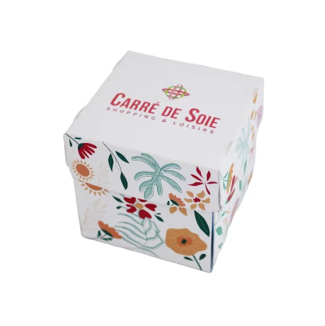 Dimension du produit:  Boite origami en papier 350g/m2, Format : 83x83x83 mm