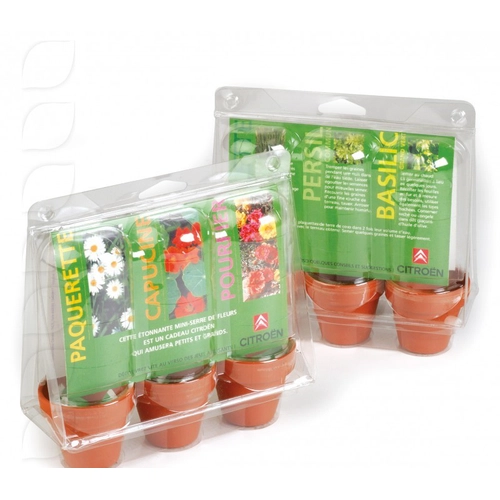 3 variétés de graines à faire pousser dans une petite serre. Un beau cadeau publicitaire, 100% nature. Nous personnalisons à votre charte graphique cette mini serre transparente qui contient 3 pots de culture, de la terre et des graines à semer. Un cadeau personnalisé pour un message original de communication développement durable. Pantacom met un point d'honneur à sélectionner des produits éco-responsables de par leur matière. Sélectionner des objets de communication Responsable est au cœur de la démarche RSE de Pantacom !