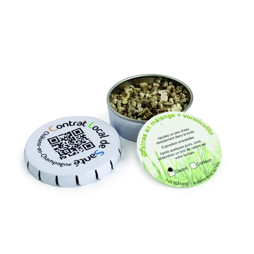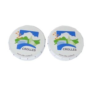 - Personnalisation par adhésif sur le couvercle ou impression quadrichromie directement sur le couvercle
