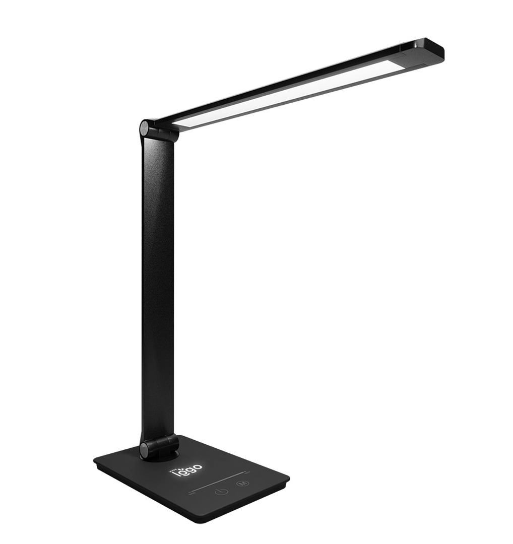 Lampe de bureau avec logo lumineux et base de chargement induction 10W. Rubber antibactérien sur la base de la lampe.