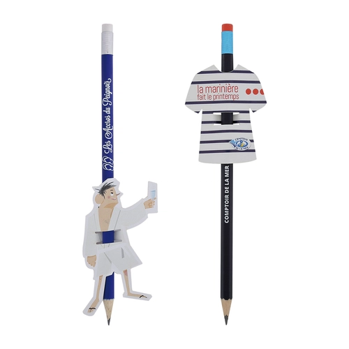 Rien de tel pour personnaliser un crayon publicitaire de manière originale que le messager sur-mesure. Cette cartonnette personnalisable en papier de 300 gr/m² est idéale pour les crayons ronds de 7.5mm de diamètre et les crayons hexagonaux faisant 17.6cm minimum. Adapté à votre messager vous aurez un design unique.