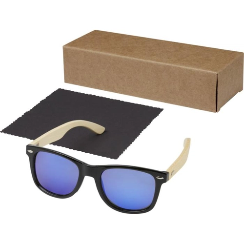 Les lunettes de soleil Taiyō en rPET/bambou sont fabriquées avec des matériaux durables répondant aux normes de qualité les plus strictes. La monture avec finition haut de gamme est polie et peinte. Elle est fabriquée à partir de plastique recyclé PET. Les branches offrent un ajustement léger et confortable. Elles sont fabriquées à partir de bambou qui provient de sources durables, environnementales et socialement responsables. Les verres ont un reflet bleu et sont polarisés, ce qui élimine la lumière du soleil réfléchissante. Ils sont donc idéals pour conduire une voiture et pour les activités extérieures par temps ensoleillé en été et en hiver. Ces lunettes sont conformes à la norme EN ISO 12312-1. Elles sont dotées de verres UV400 qui sont classés dans la catégorie 3. Livrées avec un chiffon de nettoyage en plastique recyclé PET (15 x 15 cm) et emballées dans un coffret cadeau en carton recyclé (16,5 x 6 x 4 cm). La gravure au laser est recommandée comme option de marquage durable.