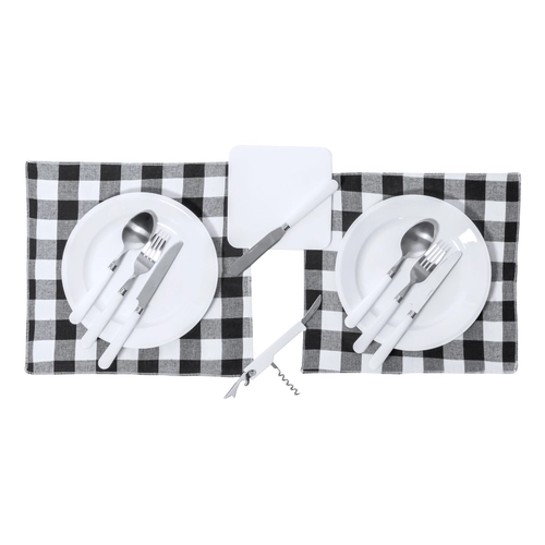 Set de vaisselle et couverts pique-nique 13 pièces pour 2 personnes, livré dans sa mallette de transport zippée en polyester RPET 600D.