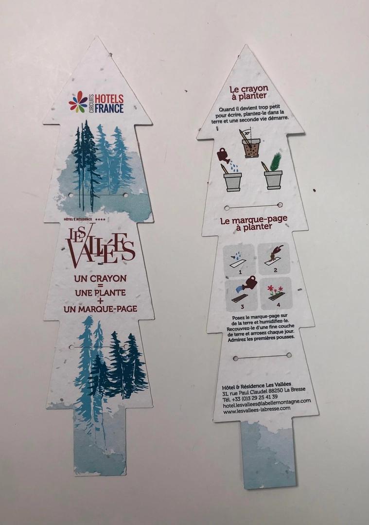 Vous souhaitez communiquer sur votre démarche RSE. Le marque page en papier de graines est un objet de communication idéal si vous travailler dans le secteur de la culture par exemple !
