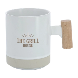 Mug céramique 330 ml avec bande de grès et poignée en bois